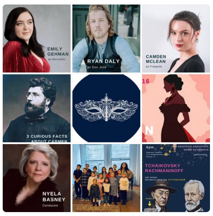 Opera productions and concerts in Chicago and beyond. Best of romantic and modern repertoire.